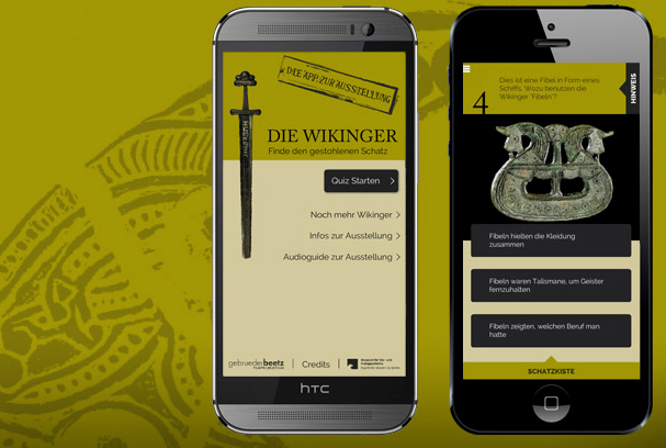 Design and software for an app on behalf of beetz brothers film production in cooperation with the Museum for Pre- and Early History Berlin. Vikings – The Treasure Quiz is the museum app for the exhibition “The Vikings” at Martin-Gropius-Bau, which ran from September 2014 until January 2015. The app takes Viking fans on a journey through the history and culture of the Vikings. The app is an interactive quiz for mobile devices which uses questions to guide the player through the exhibition to explore the artifacts.